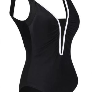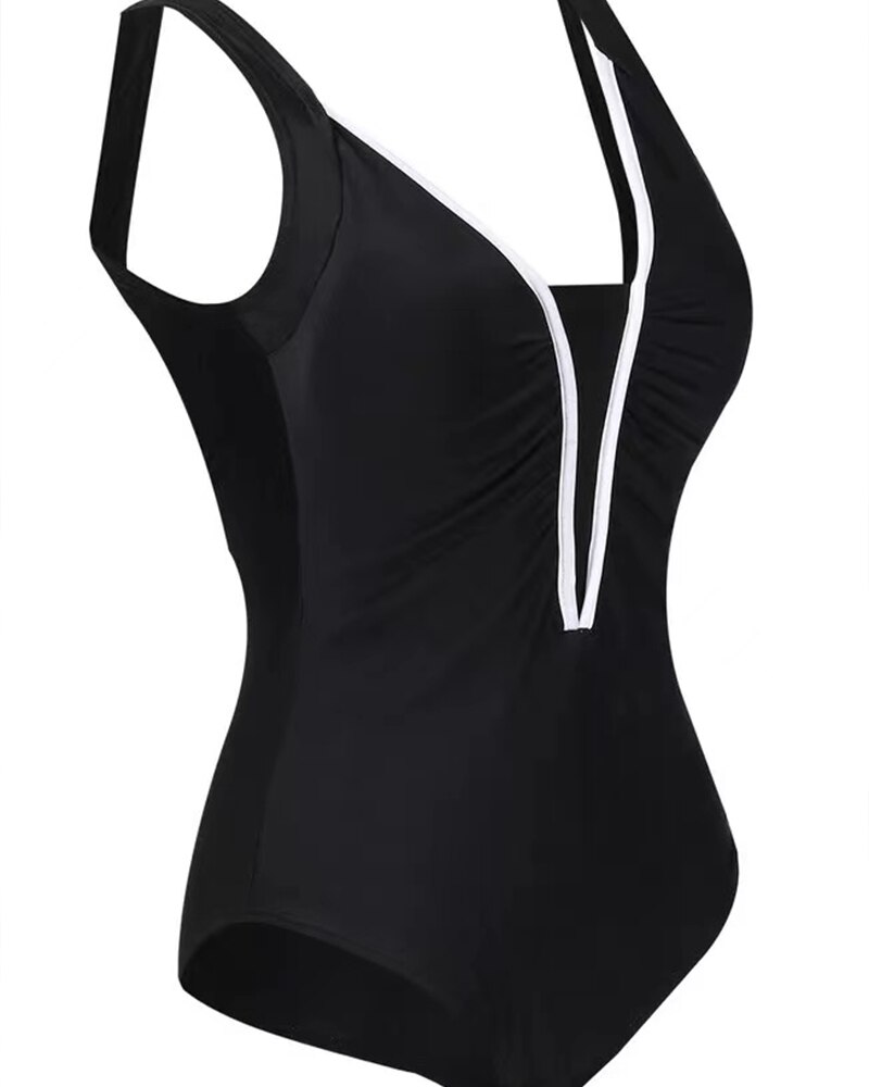 Black One-piece Swimsuit Woman Sexy Deep V Neck Backless Monokini latestNew Brazilian Fashion Beach Swimming Bathing Suit Swimwear