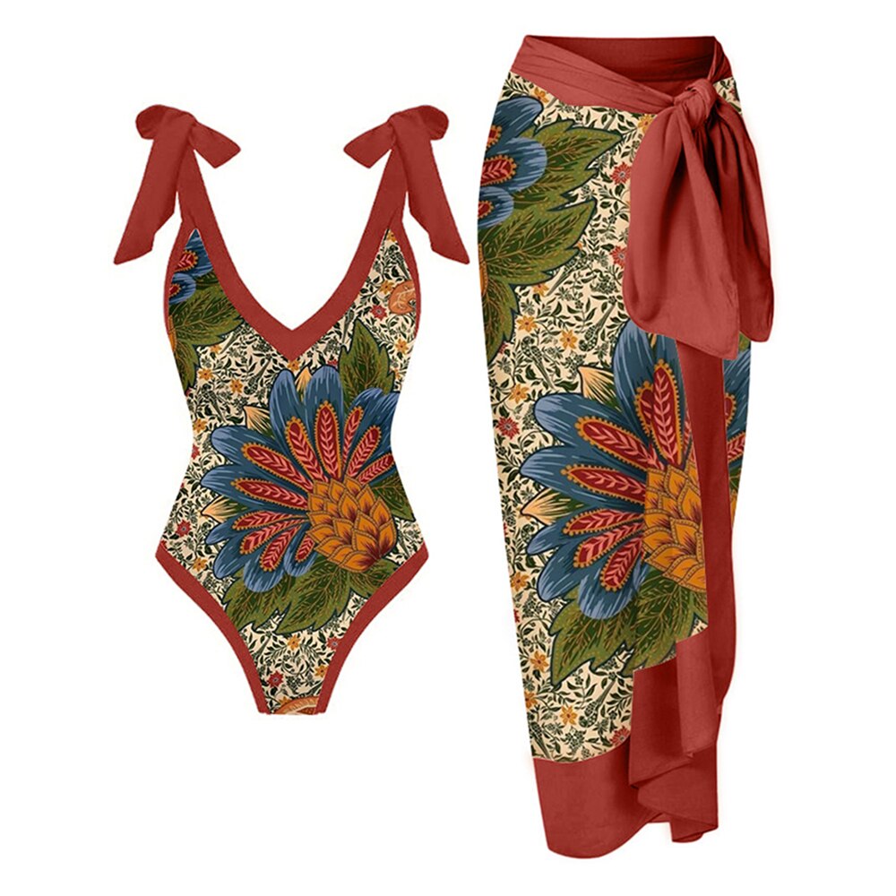 Printed Lace Up Chic One Piece Swimwear High Waist Backless Swimsuit Women Color Elegant Beachwear Push Up Luxury Cover Up